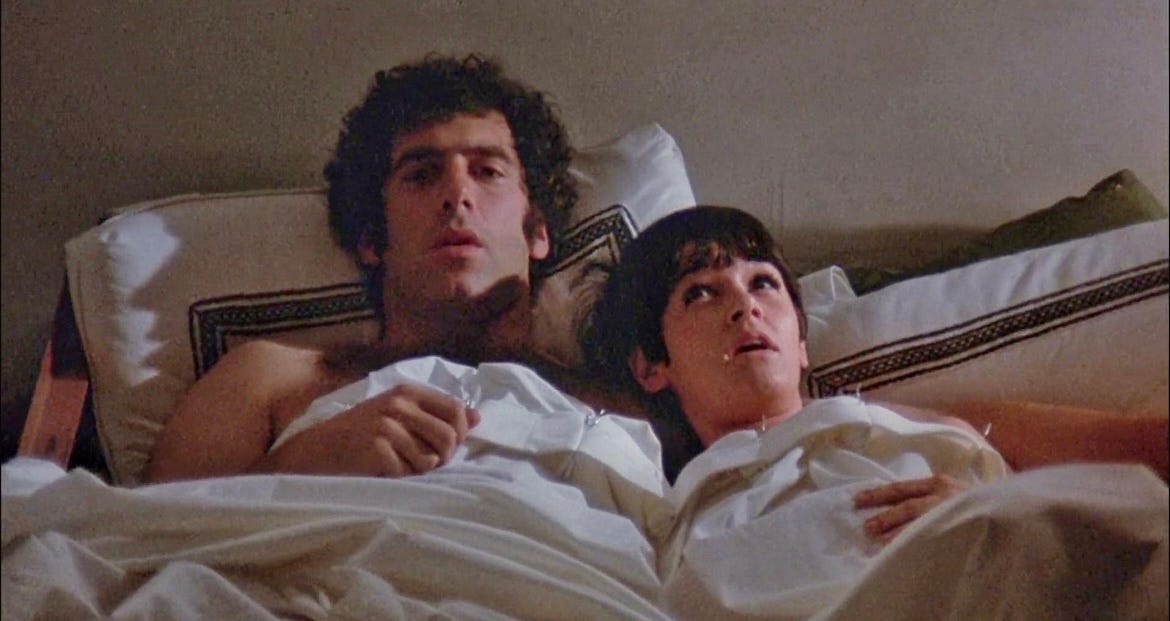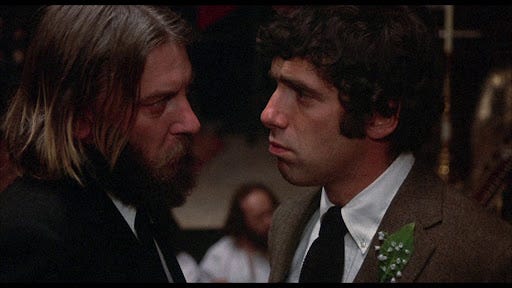 I’m old enough now that certain feelings do come through. Some of what I’m going through right now even fights against how much I respond to this film. Cynicism feels unavoidable, no matter what I want to think. I want that sense of feeling and kindness and love, I want that life with the person I now know but the other stuff is still there and there are times when everything combined makes absolutely no sense. I just need to keep fighting through it all and find the good. Maybe I have to do that more than anything. I wasn’t around yet in 1970 but something about the version of it presented in this film, as exaggerated as it might be, feels like what I imagine it was for the laughs to be as frightening as they are. The shot of Elliott Gould on the subway covered in blood is one of those stills always used to represent the film and with not a single word spoken it’s an amazing scene. The joke isn’t that no one notices, the joke is that they do and it’s one more thing that makes even more sense when seen now. Something very shocking happens in the film with still a half-hour to go that deliberately unmoors everything, leading to a payoff with the heavy breather on the phone that couldn’t be more perfect but the way it leads to the very end also makes the most sense for what the film wants to say, what it has to say. As well as what it wants to say about the very idea of things like apathy and cynicism, caring and feeling. How much the film knows what love is. And what to do with any emotion that comes from that.