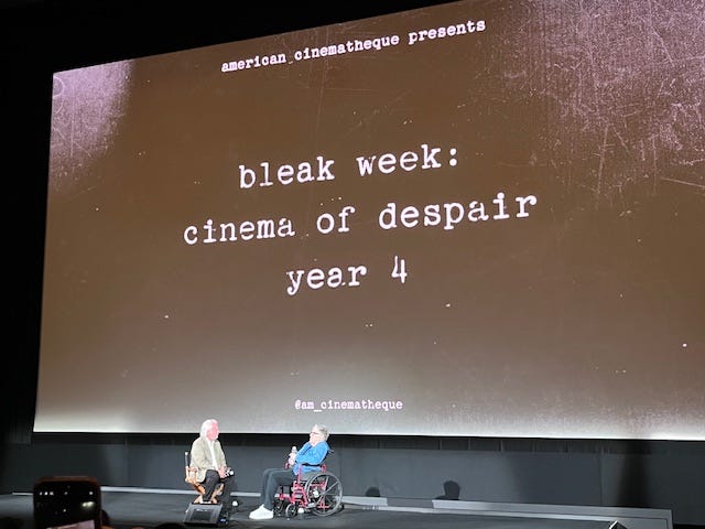 Cut to almost a year later this past June and I was at the Egyptian for opening night of the American Cinematheque’s Bleak Week with a showing of the 1971 satire LITTLE MURDERS in 35mm featuring Elliott Gould, the film’s star, in attendance. Of course I had to be there. It felt important to be in his presence right now and this seemed like the right sort of film for it to happen. I wrote about LITTLE MURDERS after first seeing it a long time ago so it’s interesting to compare that to how I feel after all these years. Not just about the movie but about everything. LITTLE MURDERS encourages that kind of thinking. However I felt about it then, what sticks out now is how much the film has seemingly become about this very moment we’re living in, as if the moment it was created has somehow circled back and because of that what the film has to say about it all means even more. Sometimes it’s not easy to know how much we should care anymore about things and that’s a question we get confronted with as things seem like they’re getting worse. So, of course, right now this film makes perfect sense.